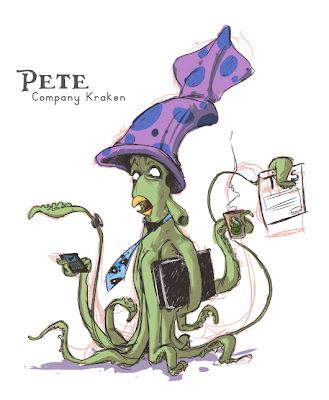 It's that time of year again and I'm working hard at a brand new holiday card set! This time, I'm adapting some of my favorite Brother's Grimm fairy tales into some greeting cheer! I'll be posting some of the cards soon, but before that, I'd like to introduce Pete, the company kraken.